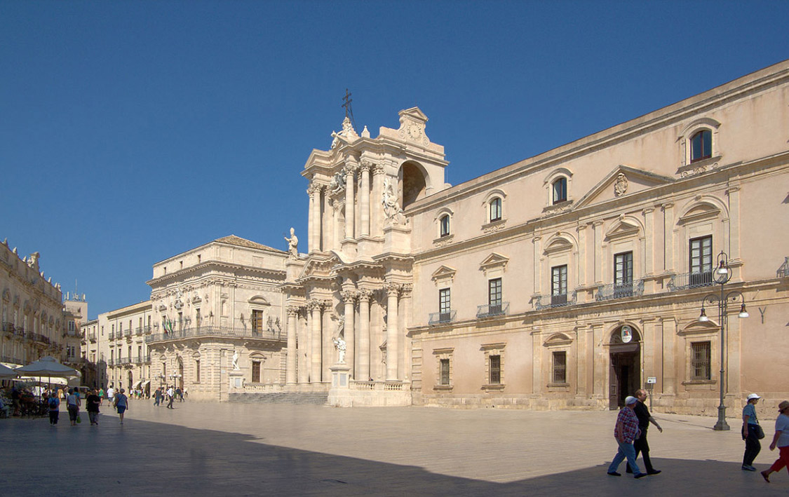 An outstanding sight in Syracuse is the Cathedral of Santa Maria delle Colonne, with the remains of the Greek Temple of Athena within. The magnificent Cathedral Square in Syracuse, surrounded by baroque palaces. Along the way to the cathedral, charming cafés and interesting markets invite you to linger.